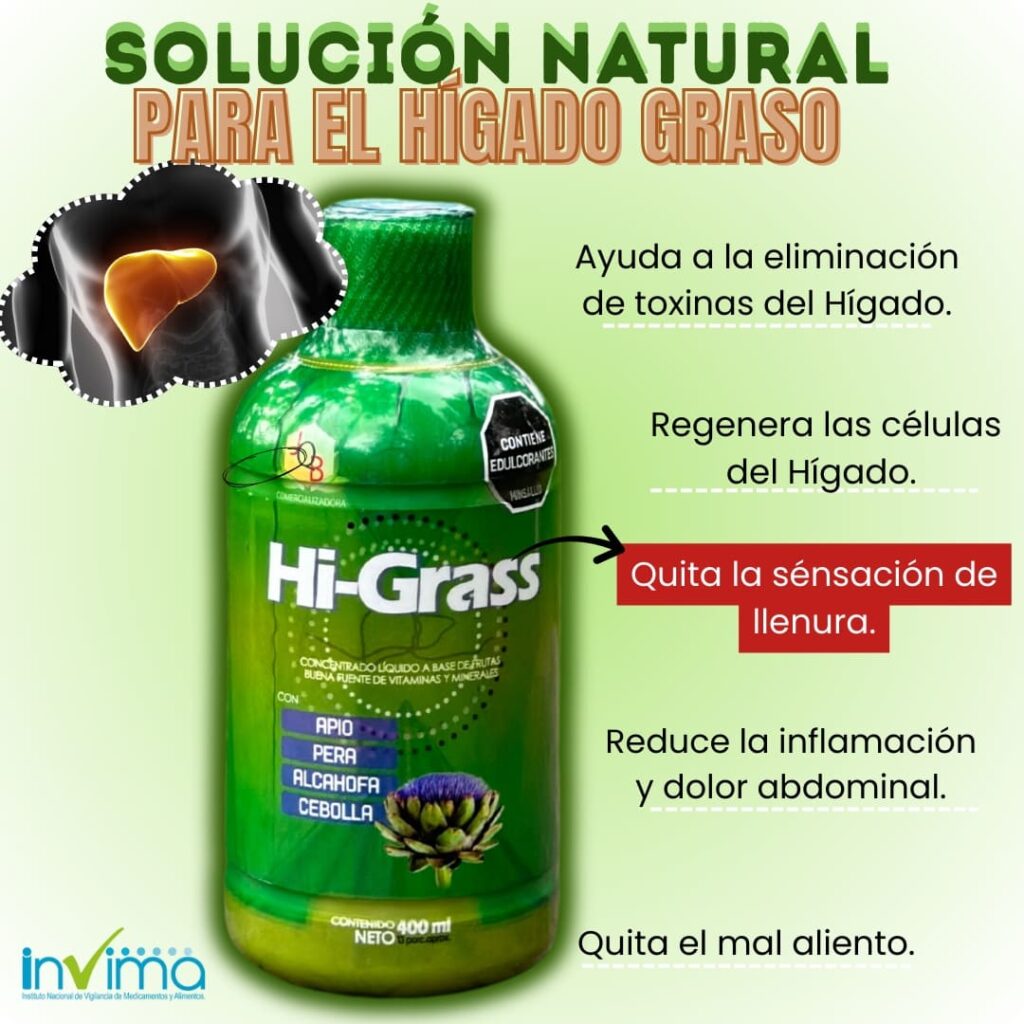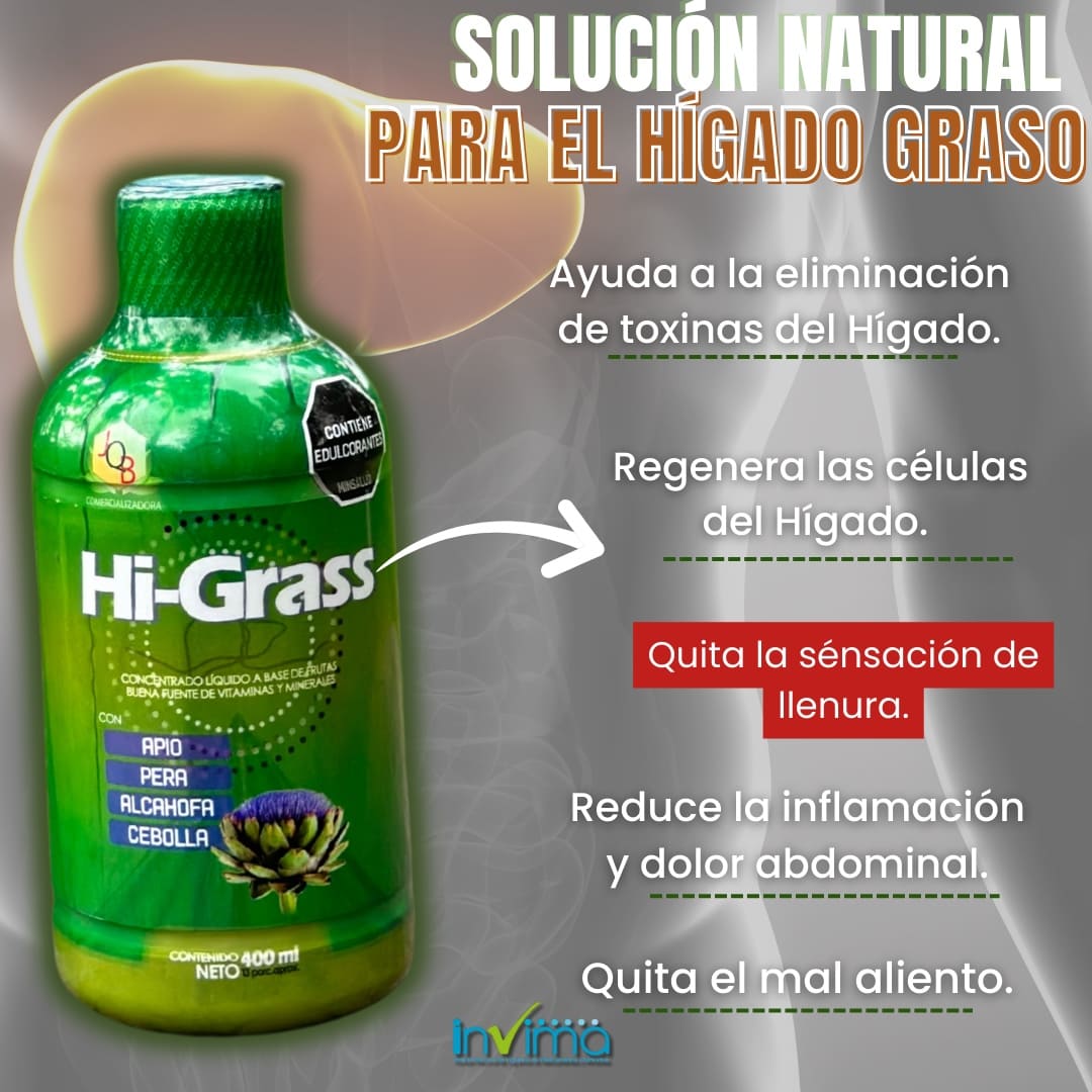 Hi-Grass es un jarabe natural, calidad premium, elaborado para ayudar a tratar y prevenir el hígado graso.👨‍🔬